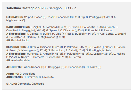 Calcio | Campionato Eccellenza – Girone B | Casteggio 1898-Seregno Fbc : 1-3