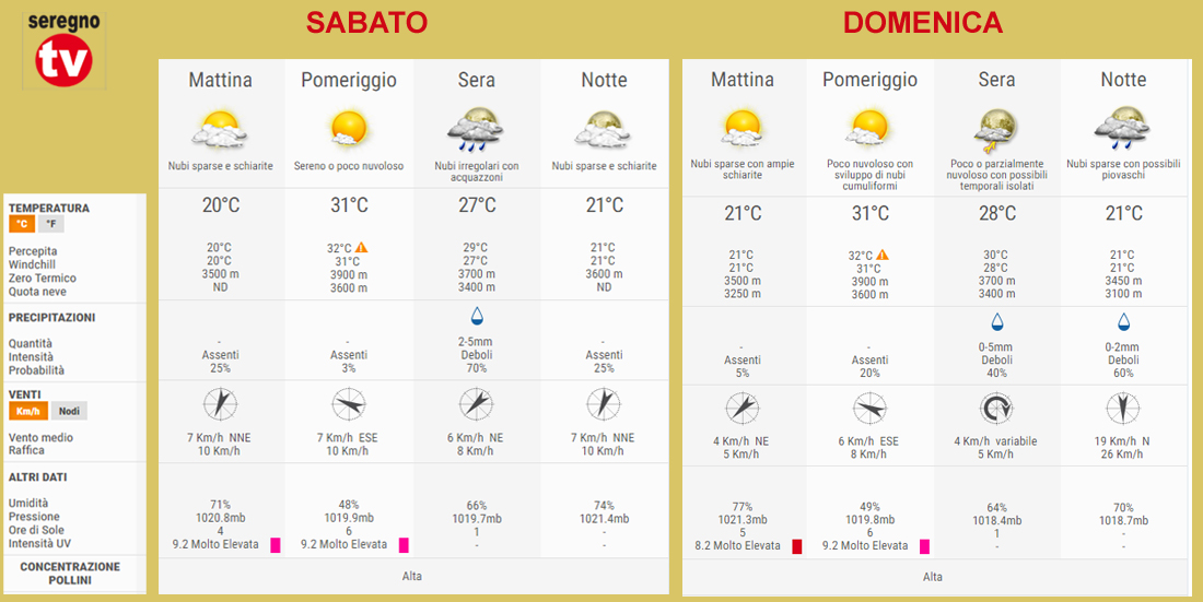 SEREGNO METEO WEEK END
