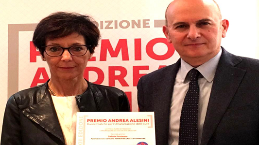 VIMERCATE – “Salute insieme” è il titolo del progetto dell’ASST Vimercate premiato da Cittadinanza Attiva , durante una cerimonia che si è svolta a Roma. L’importante riconoscimento nazionale (premio Alesini) è stato conferito “per aver favorito l’umanizzazione delle cure, aver promosso i sani stili di vita e aiutato i pazienti a smettere di fumare”. Alla cerimonia erano presenti la dottoressa Gabriella Monolo ( foto a sx ) direttore sociosanitario dell’Asst Vimercate e il dottor Biagio Tinghino ( foto a dx ) , responsabile dell’Unità di Alcologia e Nuove Dipendenze. “Si tratta di un percorso, ancora in via di svolgimento, che vuole promuovere degli “eventi di salute” negli ospedali, nelle sale d’attesa e nei contesti delle cure territoriali. Questi momenti sono dedicati a motivare i cittadini che entrano in contatto con il sistema sanitario a mangiare meglio, praticare attività fisica e smettere di fumare– afferma Biagio Tinghino da cui è partita l’idea del progetto “Process Owner” che intende recuperare i tempi “morti” che i pazienti trascorrono nelle strutture per insegnare loro la salute. In questo modo un’ora di attesa o una serata noiosa in reparto possono diventare momenti per essere coinvolti in attività, giochi, momenti di motivazione a sperimentare sani stili di vita.